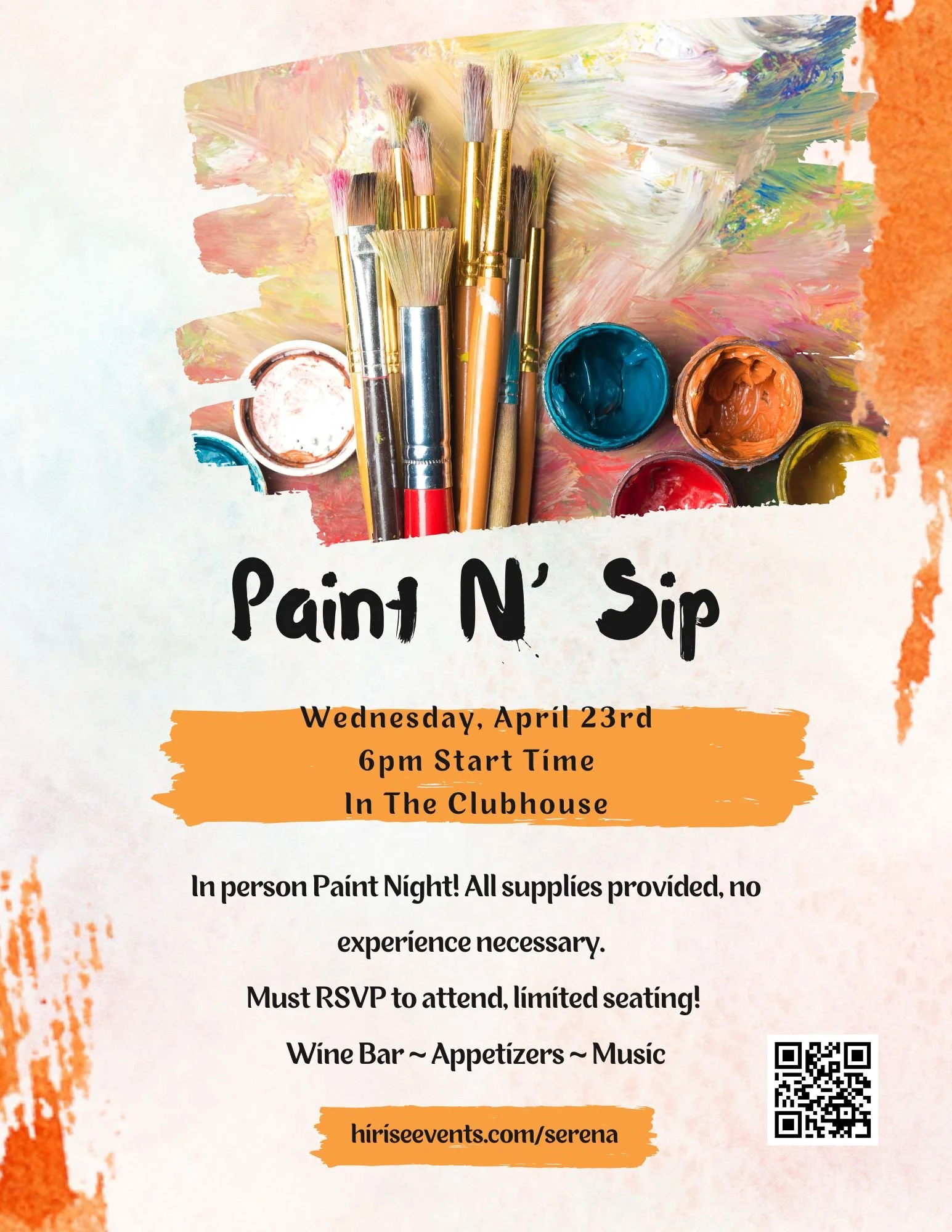 Join us for a wine tasting event at Serena Village! We’ll be sampling different wines paired with lite bites, and socializing with neighbors.