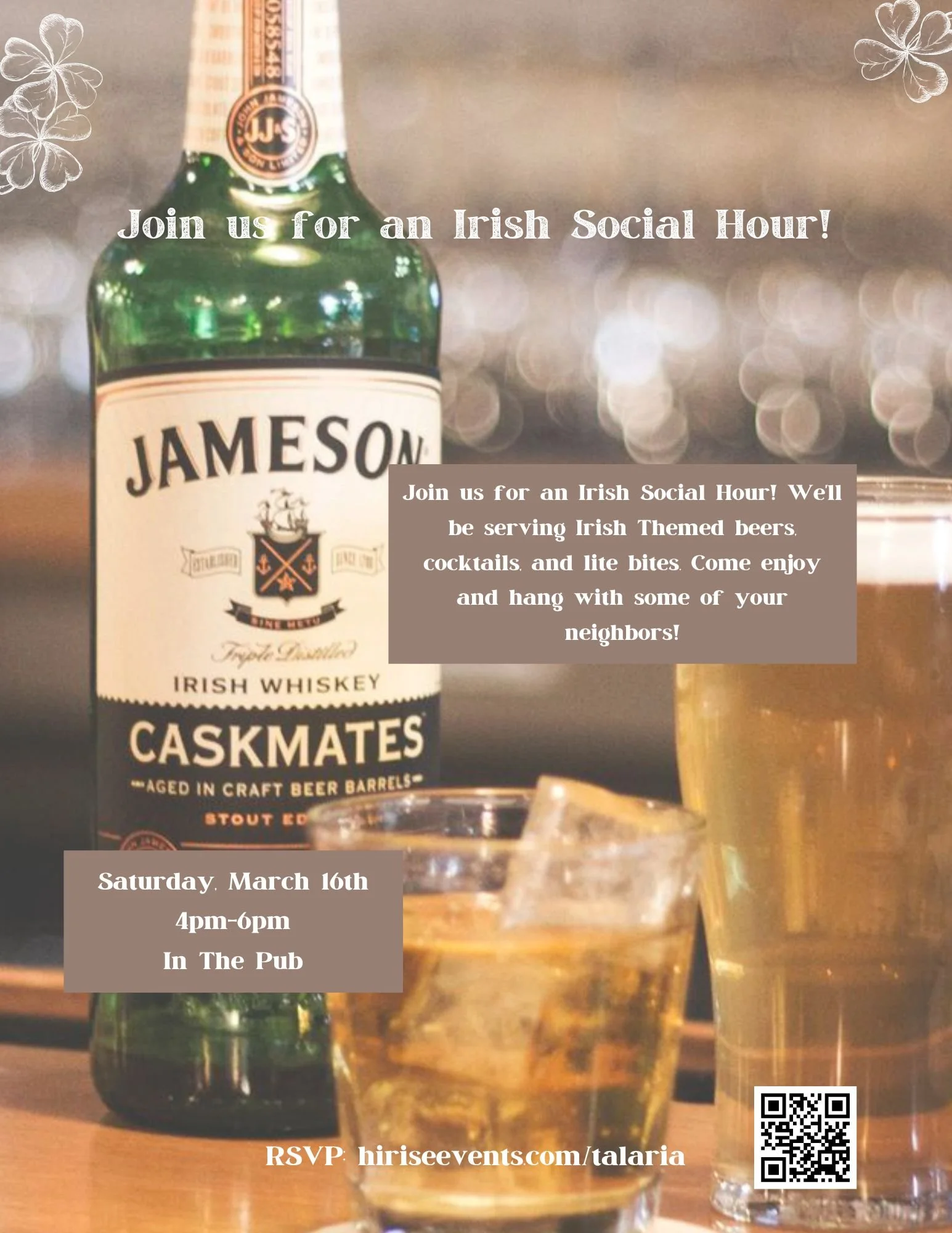 Join us for a pre St. Patricks Day celebration! We’ll be serving cold drinks and Irish themed foods.
