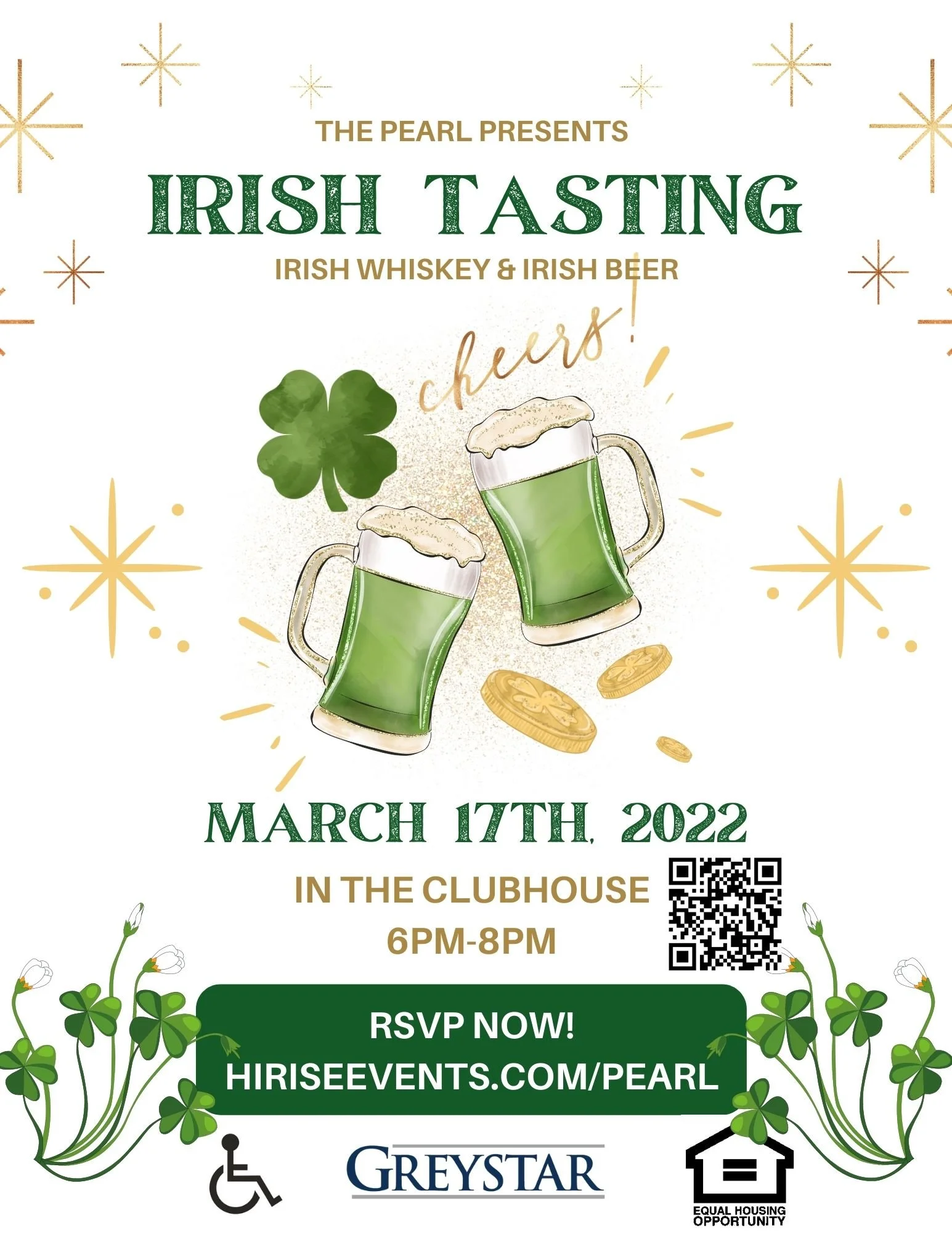 Join us for a night o’ the Irish as we offer tastings of a variety of Irish Whiskies and Irish Beers all paired with Irish bites. Bring your best green Irish outfit and join in on the fun.