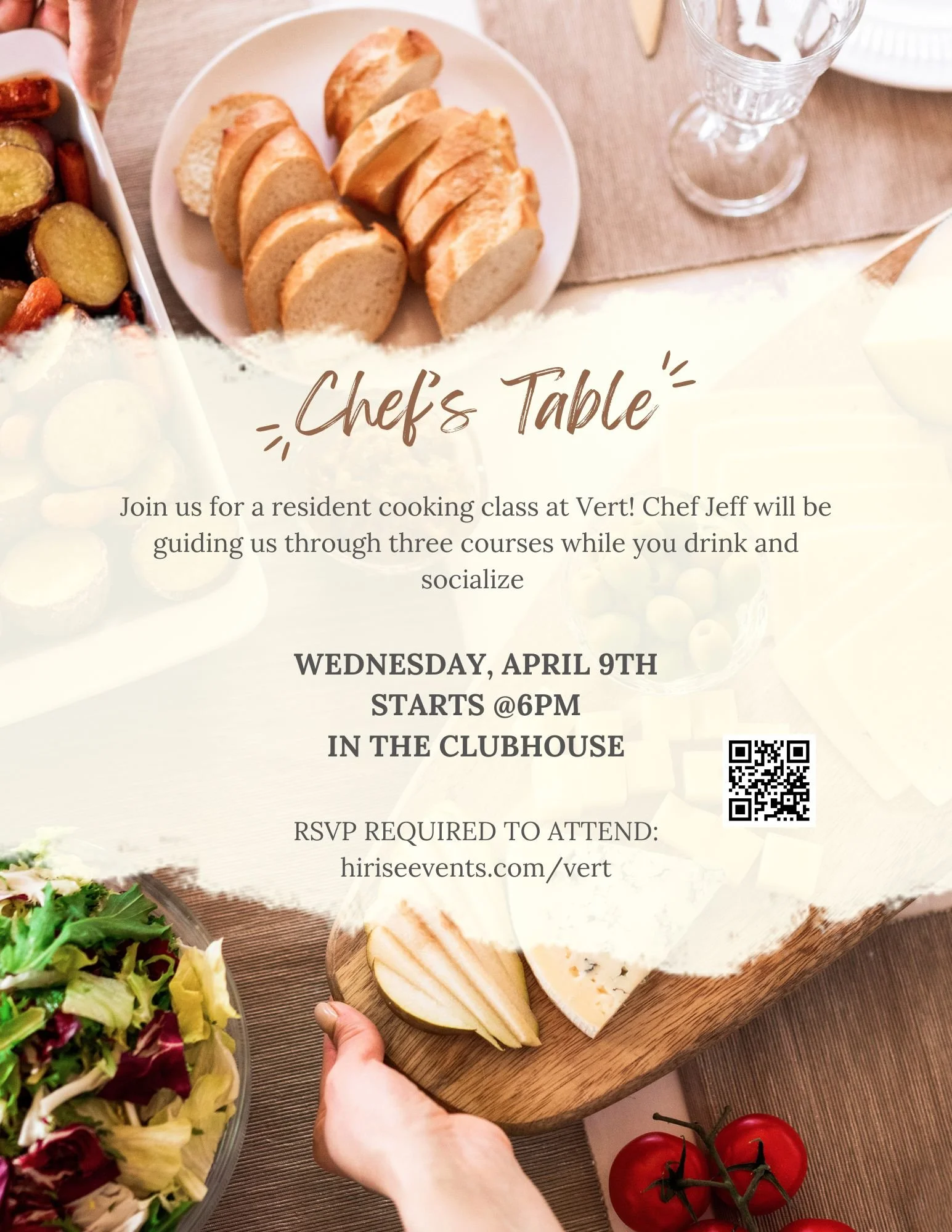 Join us for an Executive led Cooking Class. We’ll be serving up a 3-course meal paired with ice cold beverages. Chef Jeff will be leading the charge as he takes you through each step of the way.